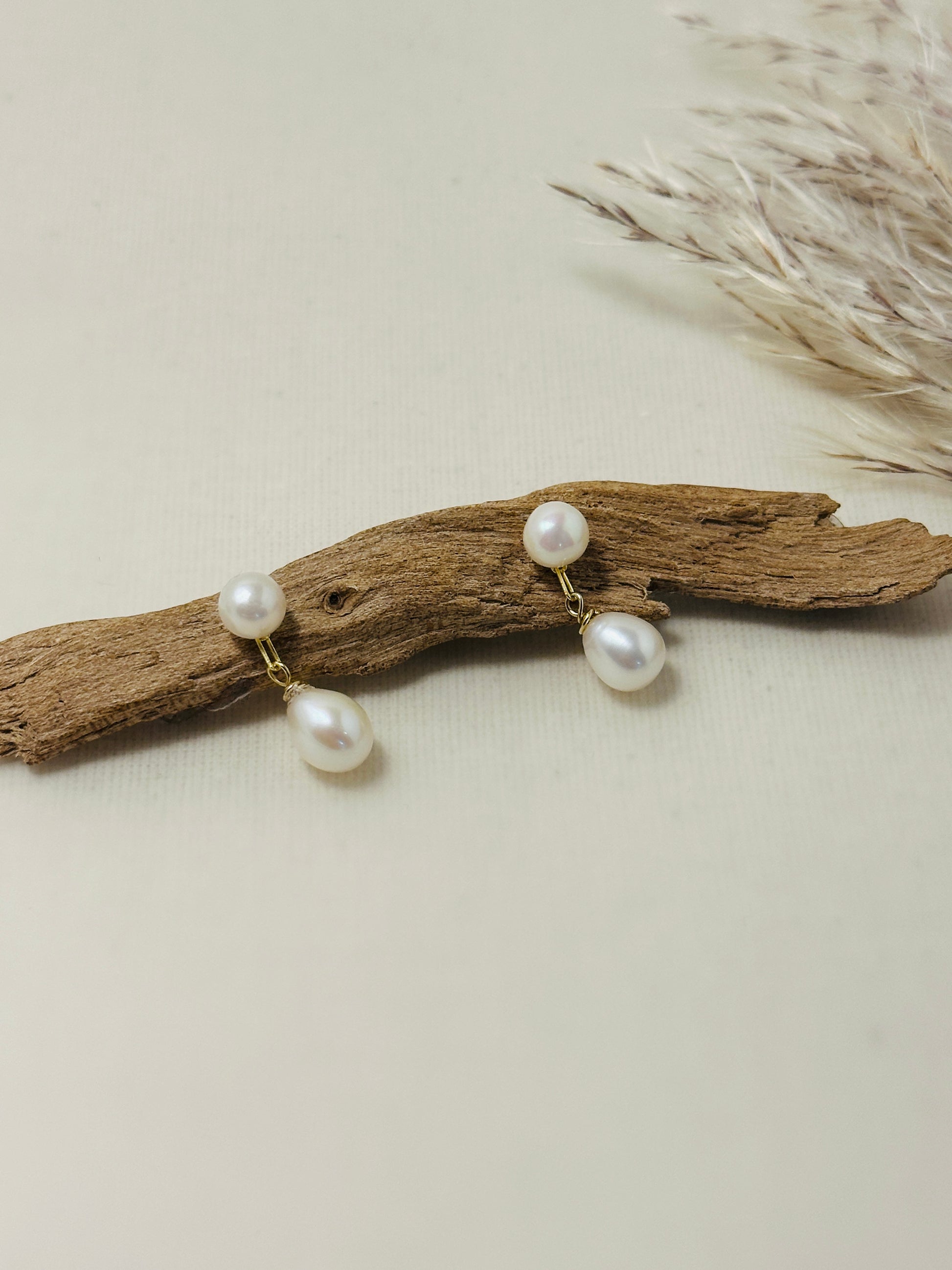 The Chloe Convertible Duo earrings are designed to move effortlessly with your day. Wear the luminous 6–7mm round freshwater pearl studs on their own for everyday elegance, or add the removable teardrop dangles to create a more refined, dressed-up look.
