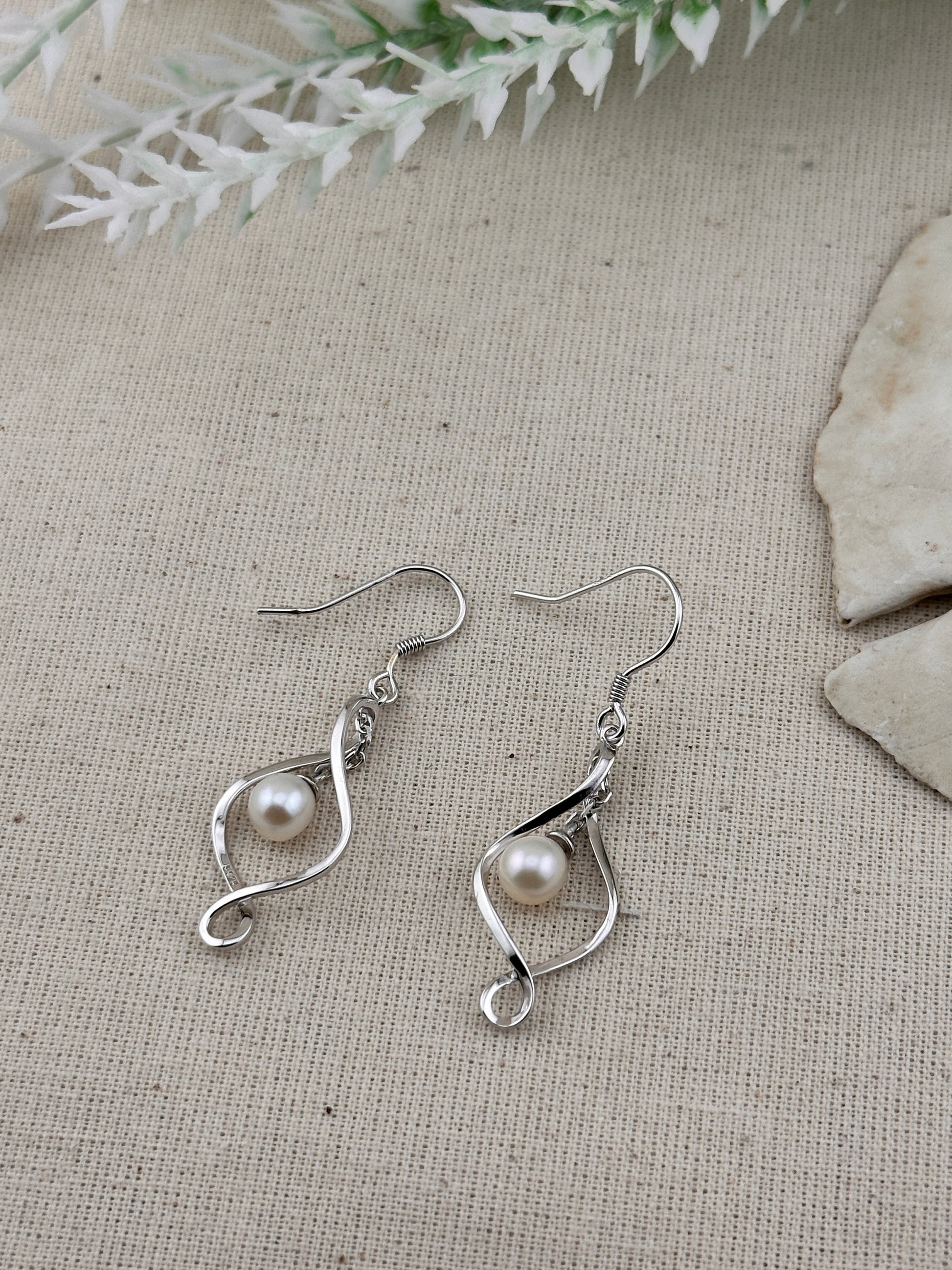Gracefully delicate and beautifully refined, the Elise Pearl Swirl Earrings bring a touch of timeless elegance to every moment. Designed in a flowing swirl-teardrop silhouette, each pair features a luminous freshwater pearl suspended within a sculpted sterling-silver curve—creating the perfect blend of softness, movement, and sophistication.
